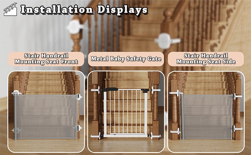 Fácil instalación: Su sencillo proceso de instalación permite una instalación rápida y sencilla, garantizando una instalación segura de su puerta o barandilla de seguridad. No necesita perforar la barandilla ni la pared; simplemente instálela en el eje de la puerta para bebés, perros o mascotas, o cualquier otra puerta de escalera, y gire la tuerca para una instalación rápida y sencilla mediante presión.