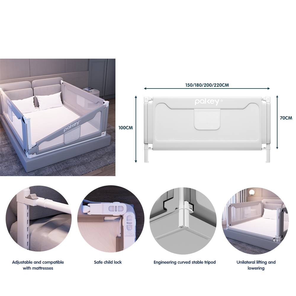 Previene caídas y duerme profundamente: Los bebés pueden caerse fácilmente del borde al darse la vuelta o gatear. Nuestras barandillas cuentan con una estructura elevada y reforzada para prevenir eficazmente caídas accidentales, permitiendo que los padres descansen tranquilos.