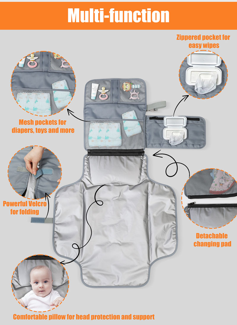 Integrated Storage: Features a zippered pocket for wipes and mesh pockets to securely hold diapers, creams, and small toys. Everything you need is always within arm's reach.