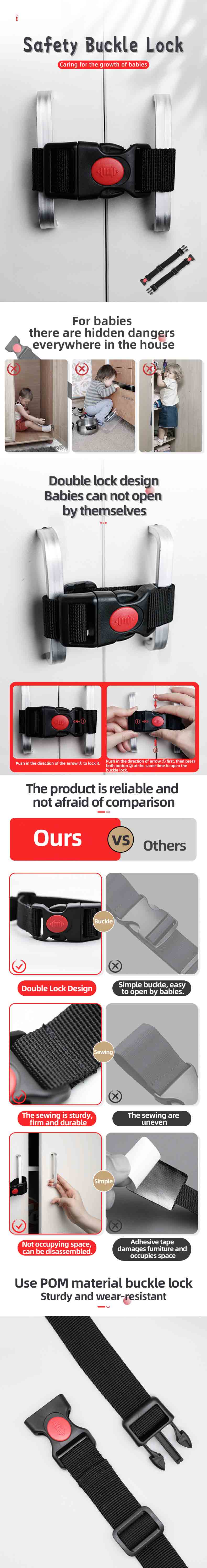 Unlike adhesive-based locks, this buckle design does not damage furniture surfaces and leaves no sticky residue.