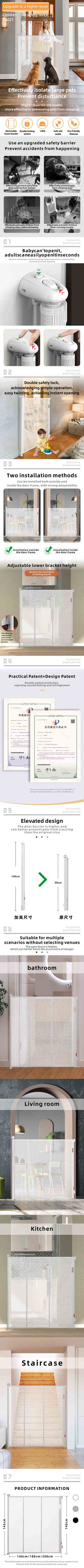 The Prodigy Extra-Tall Safety Gate is an innovative barrier solution designed to provide superior safety and convenience for households with pets and young children. With its elevated height, double-locking system, and versatile installation options, this gate effectively prevents climbing, accidental access, and unwanted intrusions while ensuring ease of use for adults.