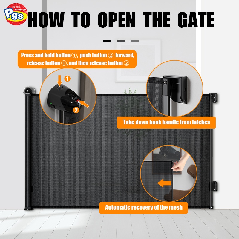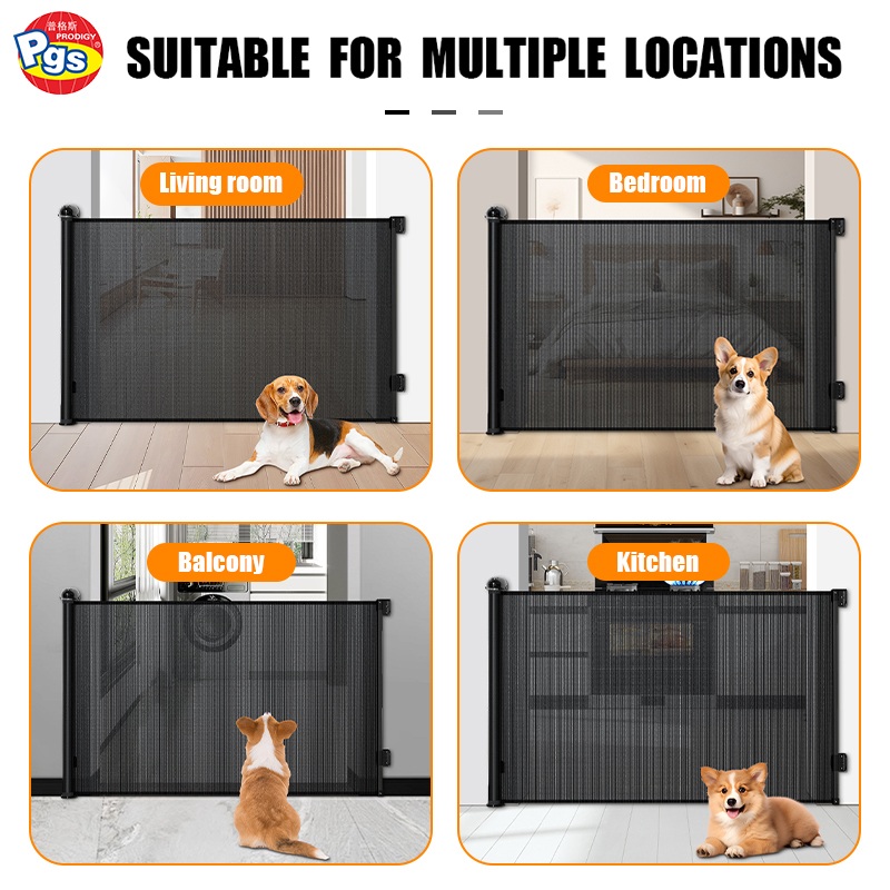 4.Space-Saving & Retractable MeshUnlike bulky traditional gates, this retractable gate retracts completely into the slim housing when not in use, leaving your doorway clear and unobstructed. The lightweight, durable mesh is easy to clean, non-toxic, and built to last.