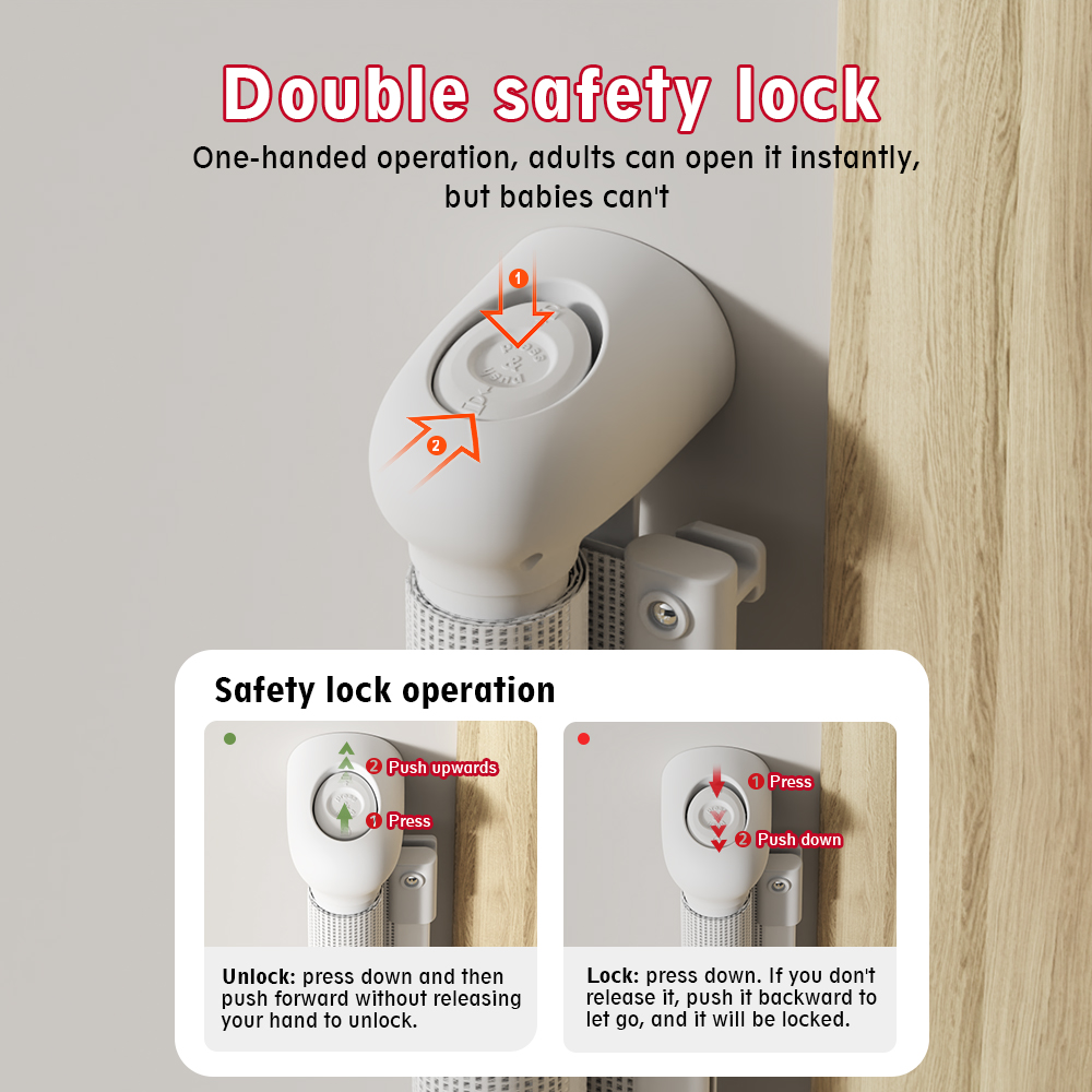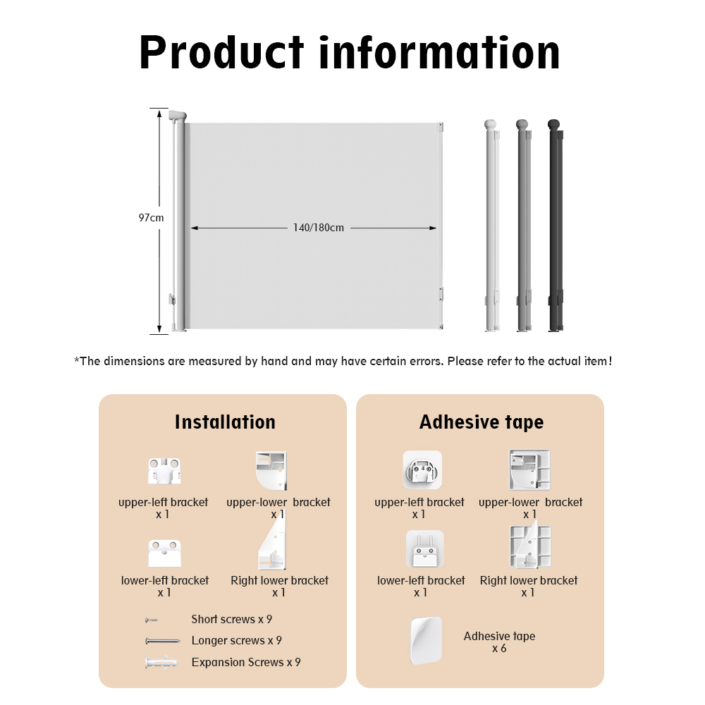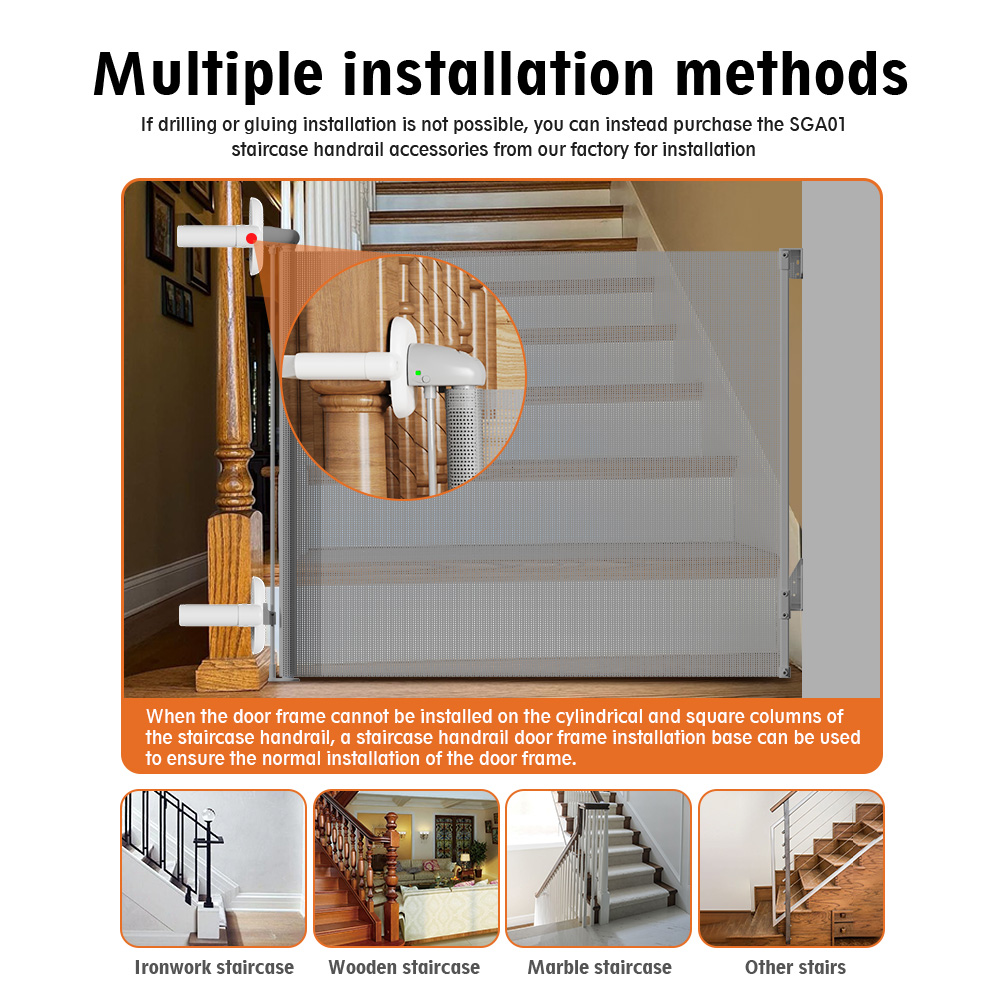 Patas inferiores ajustables: Las patas inferiores ajustables de la puerta pueden adaptarse a paredes irregulares, lo que la hace adecuada para diversos entornos interiores y exteriores, incluidas escaleras, pasillos, habitaciones, cocinas, jardines, patios y pasillos.