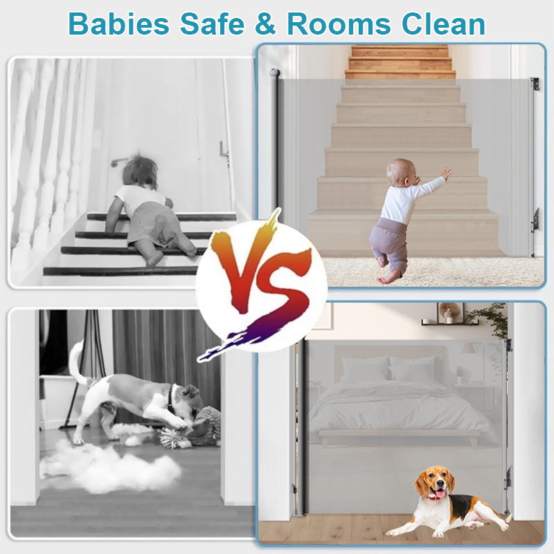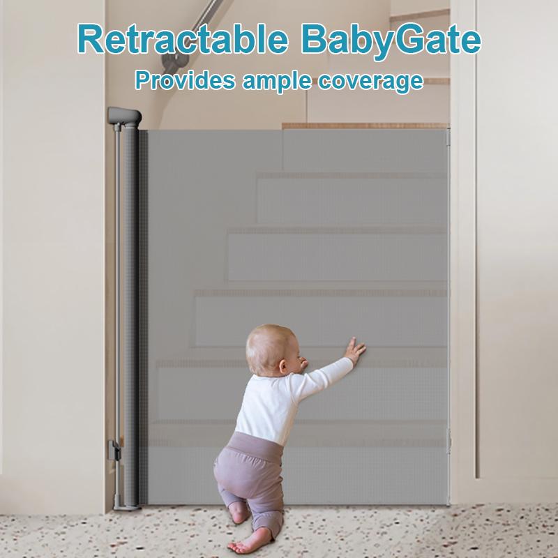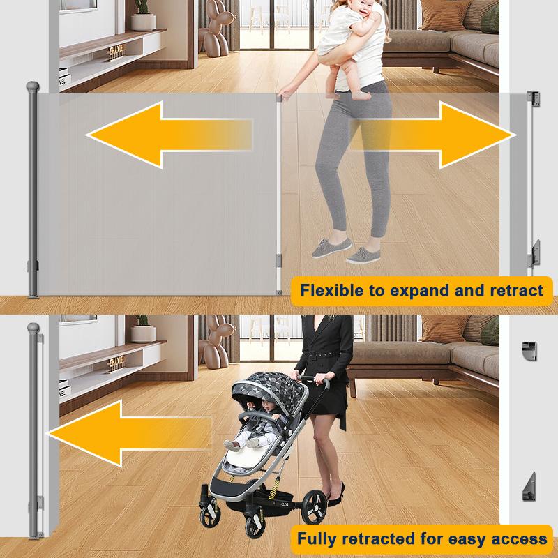 Puerta de seguridad para bebés de malla retráctil extra ancha