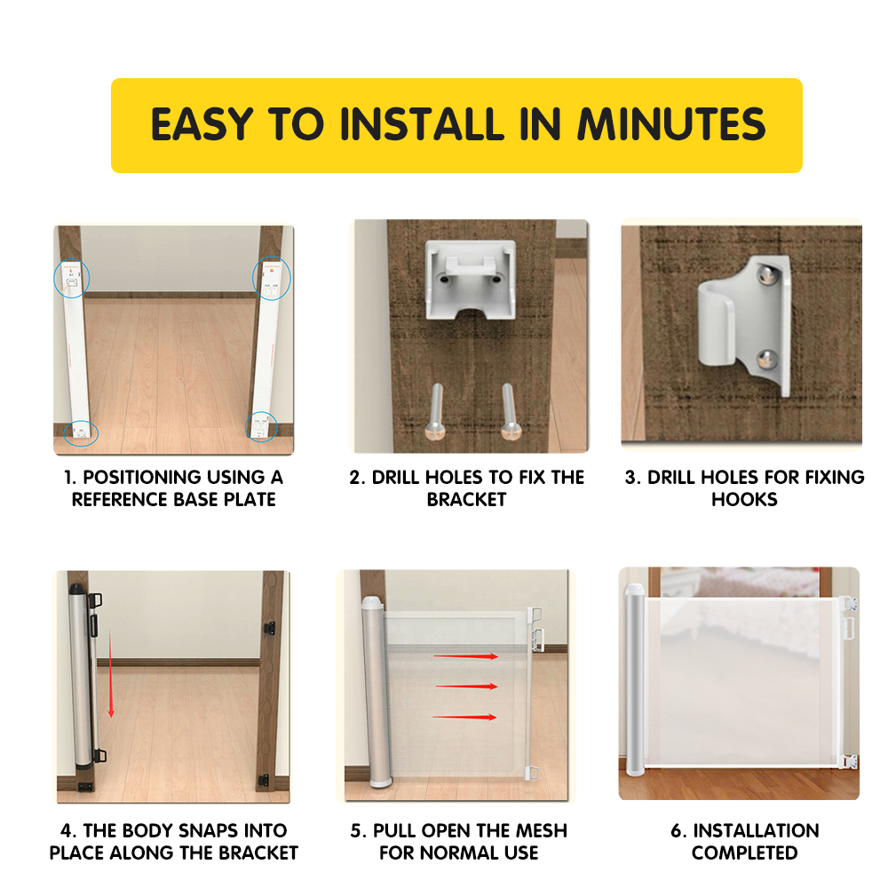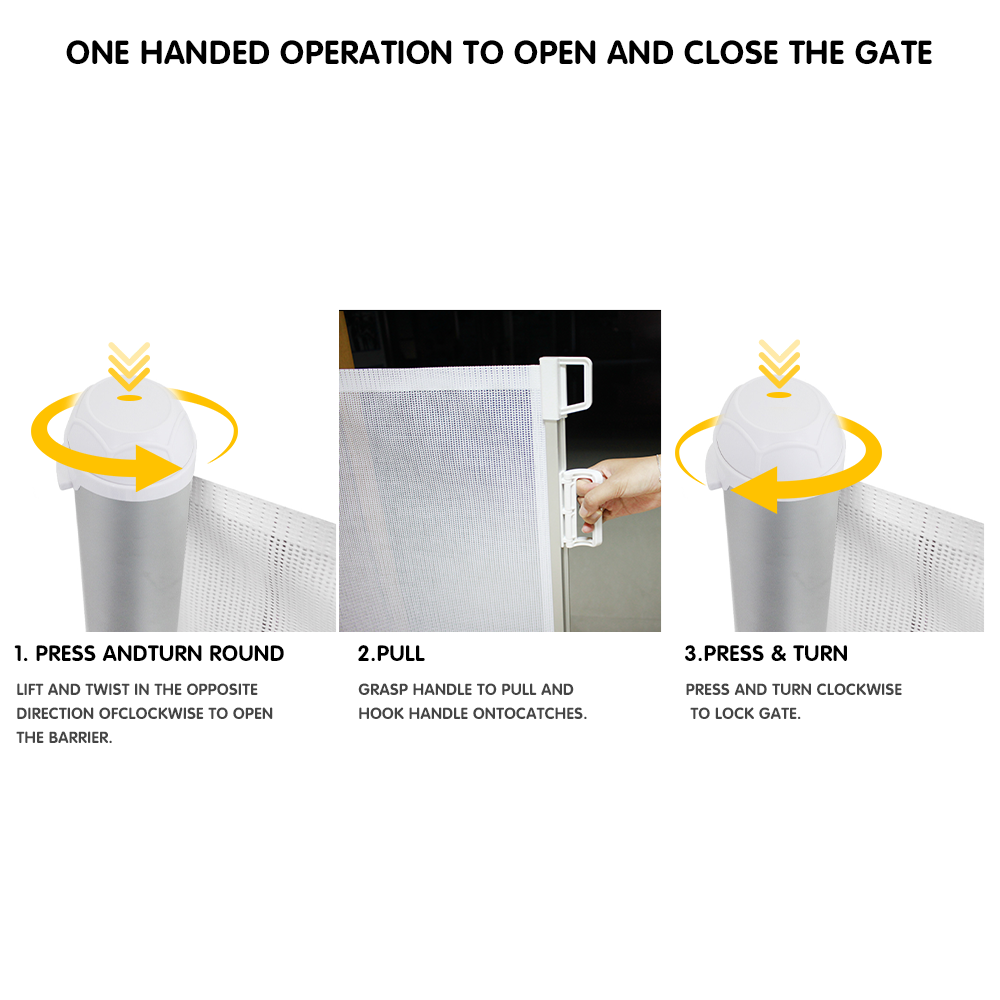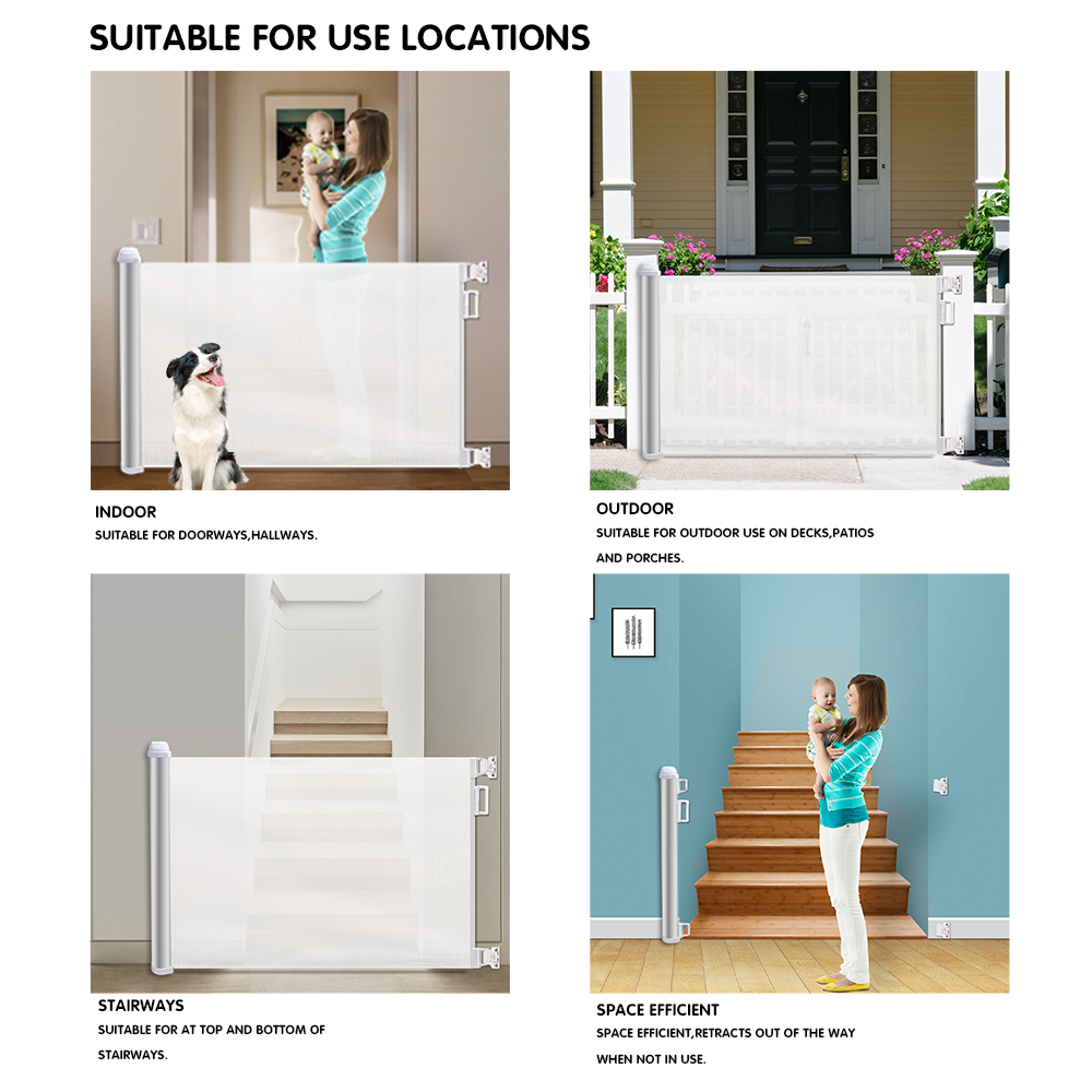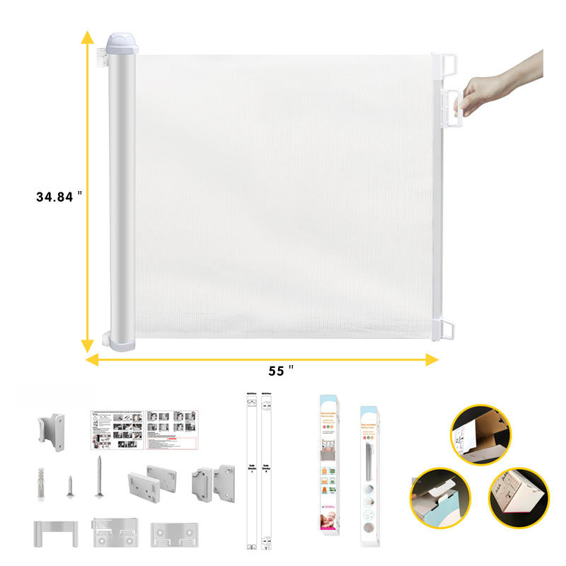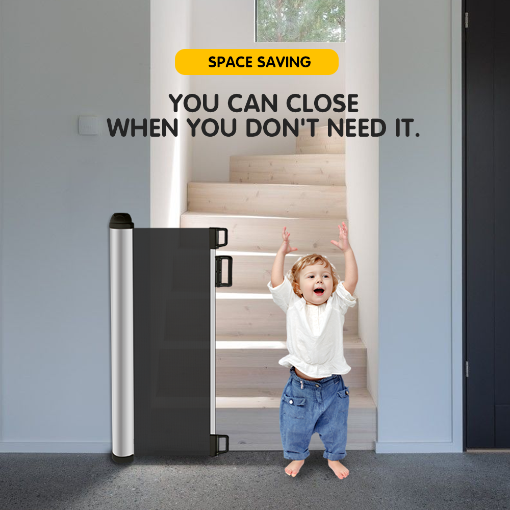Puerta de seguridad para bebés de malla retráctil extra ancha
