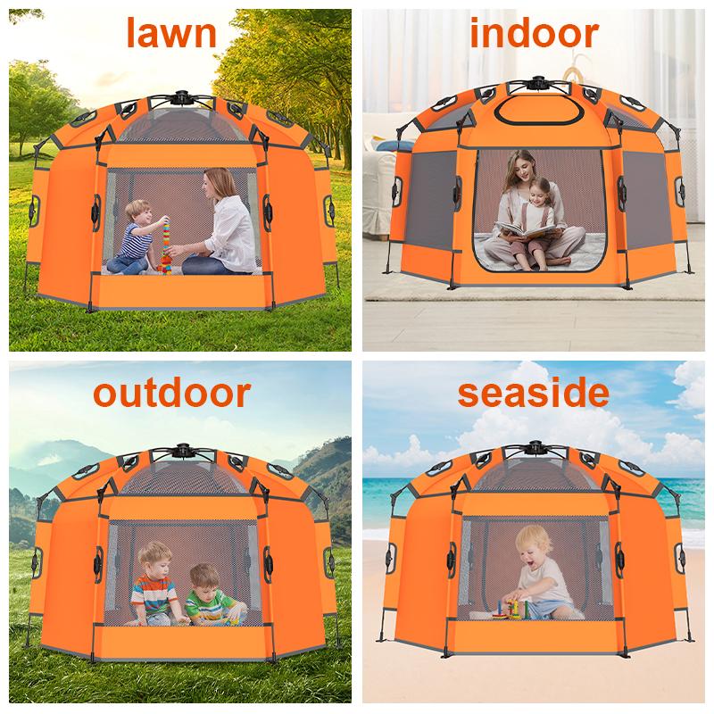 - ❤ Instalación rápida: Parque infantil automático, se monta y se pliega en segundos. Incluye seis clavijas para fijar la cerca de juego al suelo o la arena.