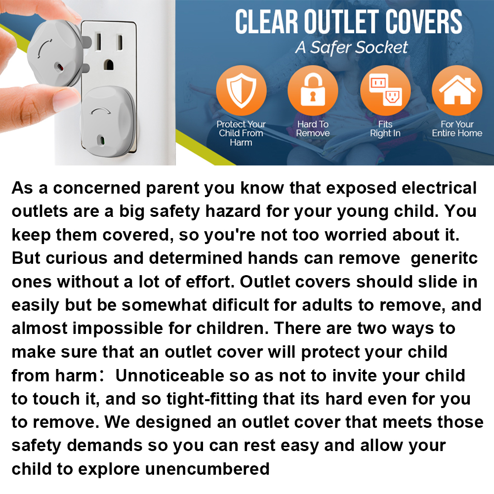 - 【El mayor peligro de descarga eléctrica】 Estas cubiertas para enchufes están especialmente diseñadas para proteger a los niños del riesgo de descarga eléctrica. Ya sea en clima húmedo o en invierno, la cubierta de protección eléctrica puede proteger a sus hijos del peligro tanto como sea posible.