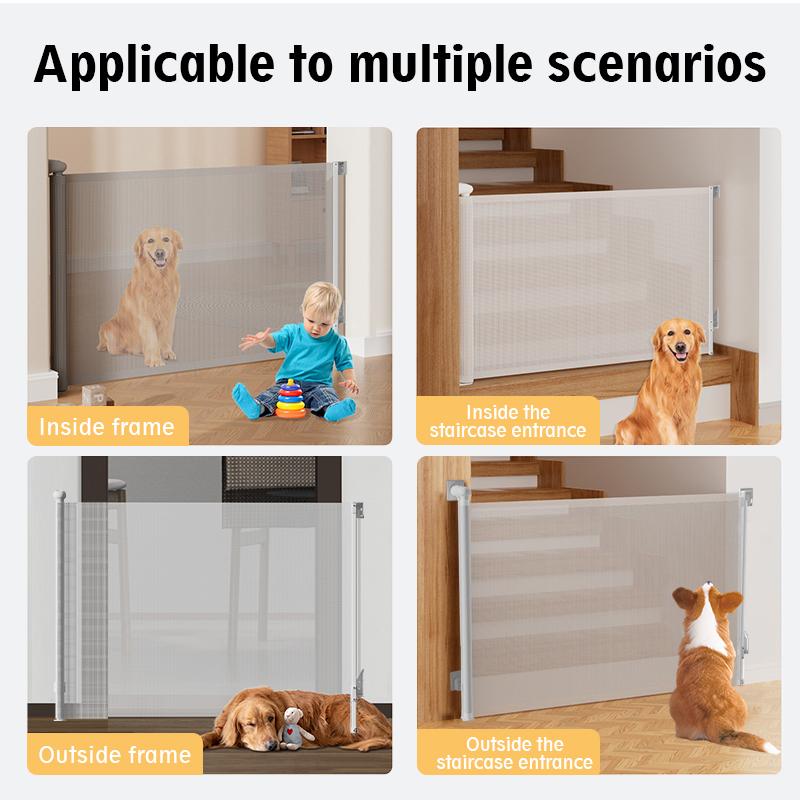 Estable y duradero: la estructura de una sola pieza garantiza la estabilidad, evitando que la puerta se vuelque, mientras que el material de malla suave y duradero ofrece protección y reducción de ruido.