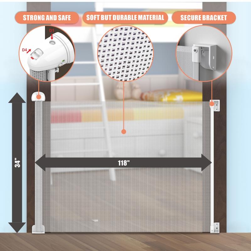 Puerta de seguridad de malla extensible aprobada por ASTM para protección de escaleras infantiles