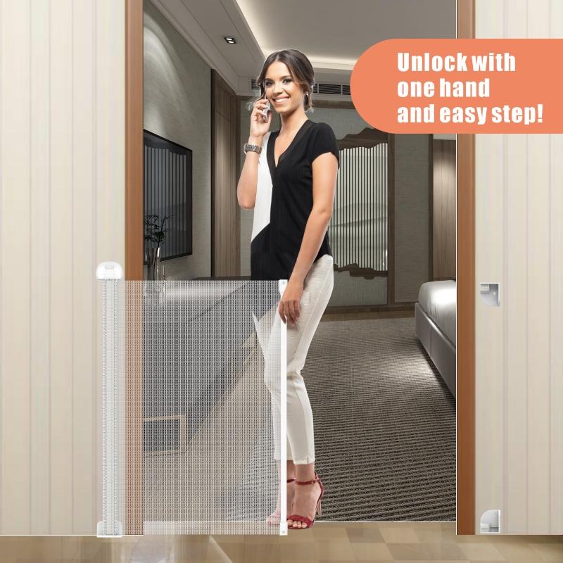 Su operación con una sola mano permite un paso sin esfuerzo incluso cuando se transportan artículos18, y el diseño de malla retráctil se enrolla cuidadosamente cuando no está en uso, eliminando riesgos de tropiezos y ahorrando espacio.