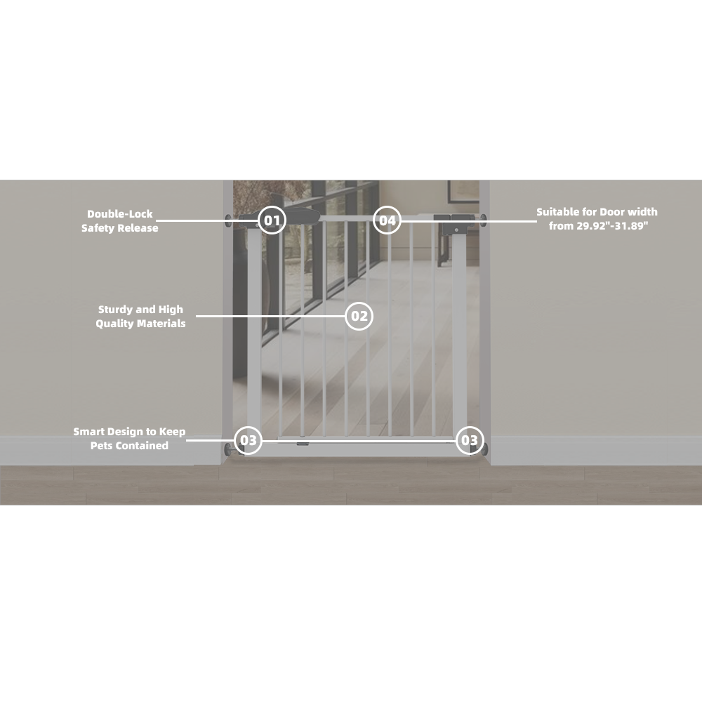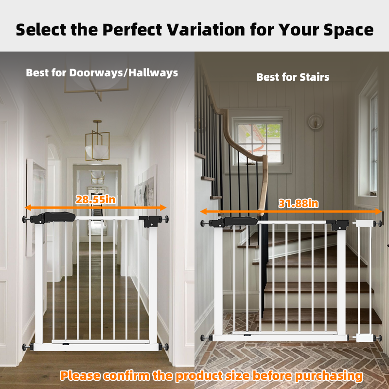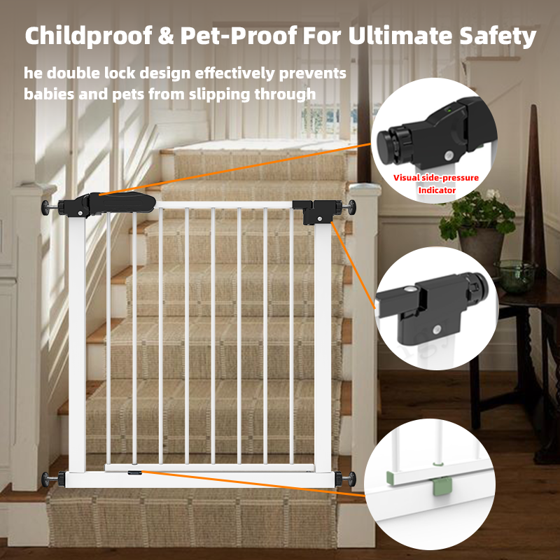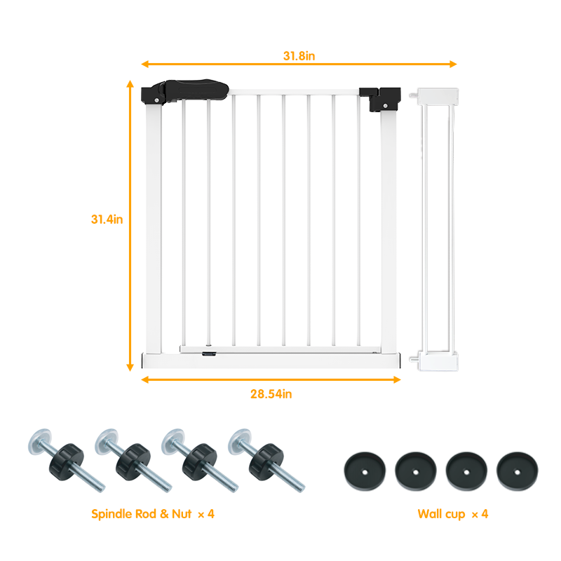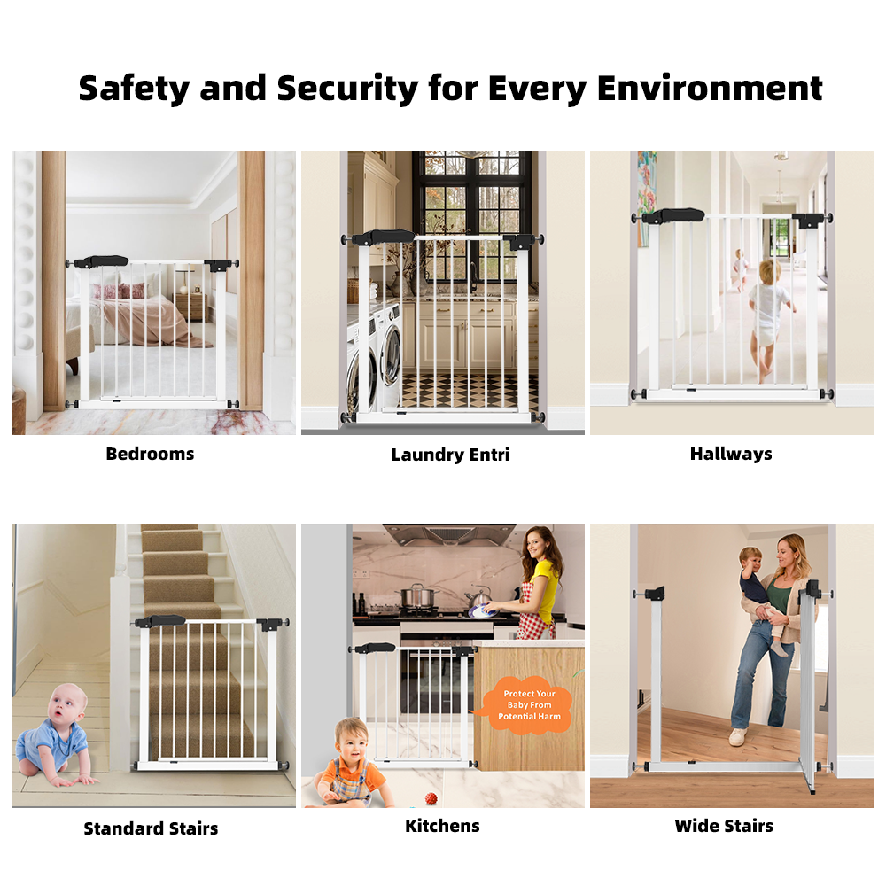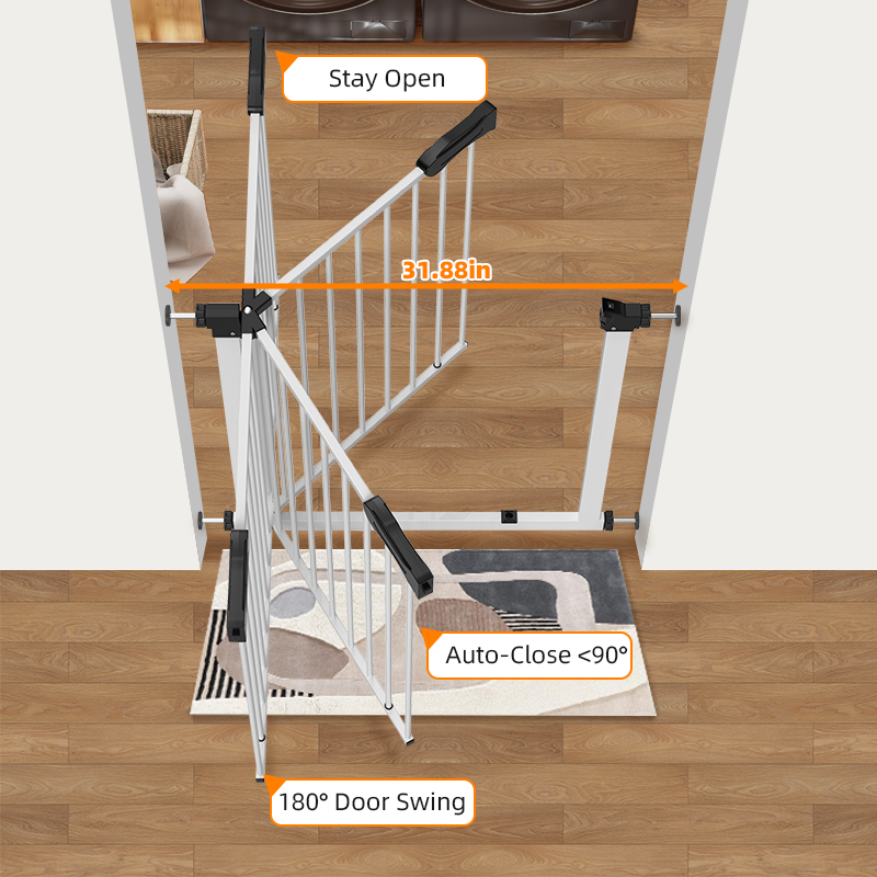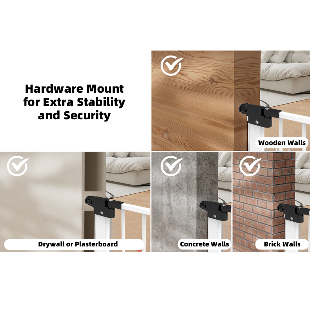 - Instalación sencilla y sin problemas en los zócalos: Los soportes inferiores de la puerta retráctil para perros se ubican a 16,5 cm del suelo, lo que permite instalar la puerta de escalera sin necesidad de taladrar los zócalos para proteger la moldura. Todos los accesorios de instalación incluidos facilitan la instalación.