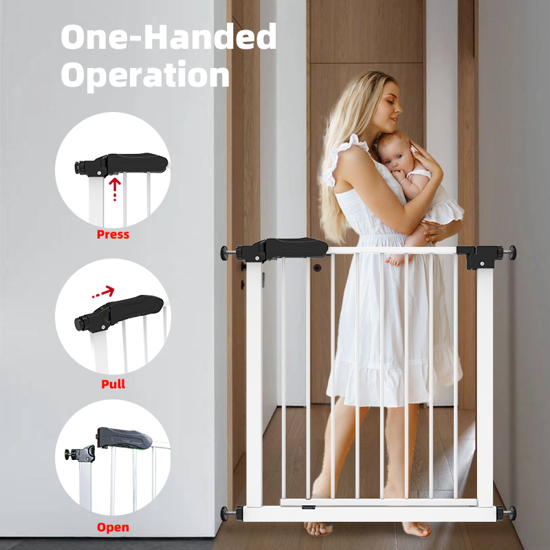 - Puerta de seguridad infantil con una sola mano: La puerta de malla para bebés cuenta con un doble cierre seguro, resistente para niños pequeños, pero fácil de usar para adultos. Diseñada para padres ocupados, se abre y cierra fácilmente con una mano mientras sostienes a un bebé, haces la compra o realizas otras tareas en casa.